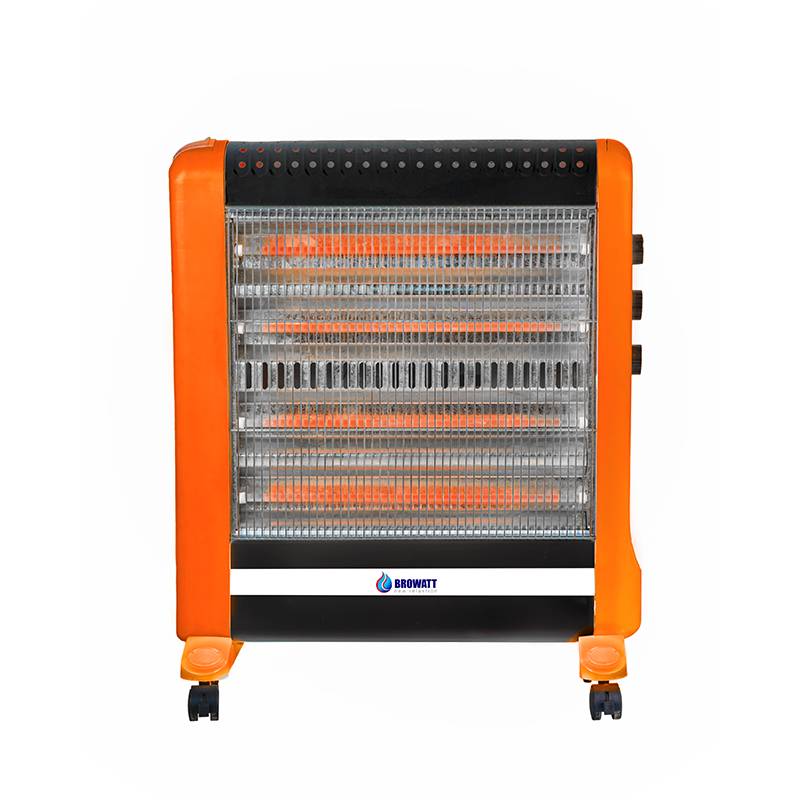 بخاری برقی فن دار مدل BR-2400 یک بخاری برقی و هیتر برقی فن دار و دارای سیستم بخار آب به منظور افزایش رطوبت محیط است، طرح این بخاری به گونه ای انتخاب شده است که متشکل از دو نوع مواد پلاستیکی و فلزی می باشد و مجهز به چهار المنت برقی شیشه ای کم مصرف است و همچنین به منظور سهولت در جابجایی چهار عدد چرخ متحرک قابل باز و بسته شدن به پایه ها اضافه شده است.